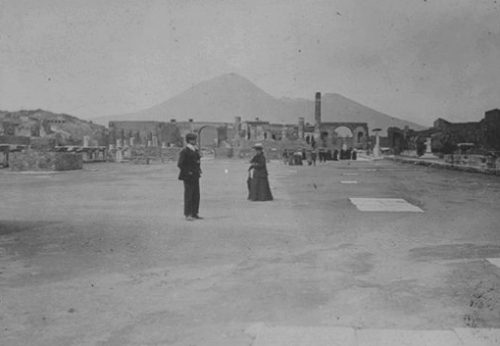 Forum in Richtung Vesuv aus dem Jahre 1860 Mit den damaligen Methoden konnte man in Herculaneum nur auf Schatzgräberei gehen, denn der harte Vesuvschlamm musste mit Bergwerksmethoden beseitigt werden. In Pompeji sah die Sache infolge weichen Gesteins anders aus. Nachdem zunächst noch alle Funde in Museen verbracht worden waren, begann man nun alles Ergrabene in situ (an Ort & Stelle) für die Nachwelt zu erhalten und damit zur Schau zu stellen.