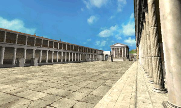 Süden von der Mitte des Forums aus. Auch nach der Neuausrichtung des Platzes an der Wende zum 1.Jh.v.Chr. blieb Platz für Veränderungen. Nun war es nicht mehr erwünscht, dass sich die Händler mit ihren Karren und Tieren auf dem Forum tummelten. So erhöhte man den Portikus gleich um zwei (ursprünglich waren es drei) Stufen und unterband damit jede Möglichkeit eben einfahren zu können. Zudem errichtete man zwei Ehrenbögen beim Iuppitertempel. Beim nordöstlichen Bogen existieren zwei Nischen für Statuen - wahrscheinlich des Nero und des Drusus. Auf dem Bogen stand eine Reiterstatue des Caligula, wie man aus Funden erschliessen konnte. Alles in allem hatte damit das Forum den Charakter eines vom Rest der Stadt abgehobenen, beinahe abgetrennten Zentrums.