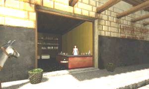 rechts: derselbe Laden mit Blick von innen heraus; man beachte die typische Tresenform
