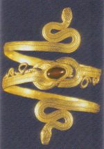 Schmuck Schmuck und Matrone waren im frühen Rom zwei Begriffe, die nicht recht zueinander passten. So schlich sich der Goldschmuck in die reichen Haushalte sehr langsam ein und hinkte allen anderen Luxusformen zunächst merklich hinterher. Dass die lex Oppia im Zuge des 2.Punischen Krieges das Gewicht des Goldschmucks pro Frau auf eine halbe Unze (ca. 14 g) ohne grossen Aufstand beschränken konnte, zeigt die geringen im Umlauf befindlichen Schmuckmengen. 20 Jahre später sah die Sache schon anders aus. Als man das Gesetz nicht aufheben wollte, gingen die Matronen auf die Strasse und demonstrierten für die Freiheit Schmuck in beliebigem Ausmass tragen zu dürfen. 195 v.Chr. kam es zur Aufhebung der lex Oppia und der Schmuckhandel erlebte einen sagenhaften Aufschwung. Die erste nennenswerte Schmuckproduktion tauchte bei den Römern allerdings erst im 1.Jh.v.Chr. auf. Bis zu diesem Zeitpunkt behalf man sich mit Handelsware und Kriegsbeute. Die Kreationen waren zwar nicht besonders kunstvoll, jedoch betont farbig gehalten. Gold war das beliebteste Schmuckmetall und es wurde in mannigfaltigster Weise verarbeitet. Man trug es an Armen, Fingern, am Hals, an Ohren, ja sogar in Haar und an den Hüften. Nur die Beine blieben meist ausgespannt, da Beinschmuck das Flair der Prostitution hatte. Sieht man von den Hüftketten ab, liess sich das Erwähnte massenhaft archäologisch erschliessen. Vorbilder dürften u.a. Götterstatuen sein, die ebenfalls mit reichem Zeremonialschmuck bedacht wurden. Die reiche Römerin dekorierte sich somit mit anuli (Ringen), inaures (auch pendentes; Ohrringe), armillae (Armreifen), spinthera (Oberarmreifen), monilia (Halsketten) sowie vittae (golddurchwirkte Haarbänder), reticula (güldene Haarnetze) und Fibeln in allen Formen und Macharten. Wahrscheinlich ausgehend von den Siegelringen der Männer verbreitete sich rasch die Sitte Metallschmuck mit Edelsteinen zu verzieren. Den Gipfel des Luxus bildeten hierbei gravierte Steine. Von den Römerinnen wurden an Edelsteinen vor allem Saphire, Smaragde, Aquamarine und Topase bevorzugt. Diamanten wurden geschliffen und ungeschliffen getragen. Auch Opale, Berylle, Jaspise, Onyxe, Granate und Rubine genossen ein hohes Ansehen. Am begehrtesten waren jedoch Perlen, die fast ausschliesslich über ägyptische Zwischenhändler importiert wurden. Das Hauptgewinnungsgebiet lag im Roten Meer, aber auch Europa hatte mit Britannien ein kleines Vorkommen. Die Perle gelangte interessanterweise erst sehr spät in die Kulturen des Mittelmeerraumes (sieht man von Ägypten an der Quelle ab). In Griechenland waren sie nahezu unbekannt und erst durch die Eroberungen Alexanders d.Gr. trat das kleine runde Schmuckstück seinen Siegeszug an. Allen Römern schlagartig bekannt wurde die Perle erstmals 61 v.Chr. als Pompeius über Mithridates triumphierte und in seinem Zug ein Portrait seiner selbst aus Perlen mitführte. Zwar hatte auch schon Jahre zuvor der korrupte sizilianische Statthalter Verres alle Perlen der Insel für sich in Anspruch genommen, doch erst das ausgehende 1.Jh.v.Chr. brachte die Preise für Perlen in fragwürdige Höhen. Wie heute richtete sich der Wert nach Grösse, Form und Farbe. Am beliebtesten war die weisse Perle in einer etwas länglichen Form. Manch reiche Römerin liess sich ihren Ohrschmuck mit Geräuschgarantie herstellen. Die Perlen klapperten beim Gehen aneinander und sorgten offensichtlich für ein gewisses "Lustgefühl." Die Sucht nach Perlen (Margaritomanie) machte auch vor den unteren Bevölkerungsschichten nicht halt, doch mussten weniger betuchte Bürgerinnen sich mit Glasperlen oder raffinierten Perlmuttimitationen behelfen. Den absoluten Spitzenreiter in Sachen Juwelenluxus nahm Lollia Paulina, die Exfrau von Kaiser Gaius ein, die bei einem minder wichtigem Bankett an ihrem Körper einen Perlen- und Smaragdbesetztes Gewand samt sonstigem Schmuck im Wert von 40 Millionen Sesterzen trug und zum Beweis der Summe die Rechnungen der Schmuckhändler herumreichen liess. Nur eine Frau der Antike besass mehr und wertvollere Perlen: Kleopatra. Sie war es auch, die in einer Wette mit ihrem Geliebten Marcus Antonius 10 Millionen in Essig auflöste. Beide wollten sich in Verschwendung übertrumpfen und Kleopatra gewann dies durch das Auflösen einer von zwei bekannten Riesenperlen in Essig. Antonius gab sich geschlagen und verhinderte die Vernichtung der anderen. Wie Antonius war auch Caesar von Perlen begeistert (und natürlich den Reiz, den sie auf Frauen hatten). Er zahlte für eine einzelne - mit Sicherheit grosse und makellose - Perle 6 Millionen Sesterzen und schenkte sie Servilia, der Mutter des Brutus. Da Schmuckstücke am Körper verpönt waren, griffen manche Reiche zur Verzierung ihrer Schuhe. Diese wurden dann mit Perlenstickereien verziert. Einer der grössten Perlenverbraucher war hingegen Kaiser Nero, der sie allerdings nicht in Essig konsumierte sondern in alle möglichen Gebrauchsgegenstände verwandeln liess. Sein Szepter, sein Reisebett, ja sogar einfache Theaterrequisiten bei Hofe wurden mit Massen von Perlen verziert. Da ihm bekannt war, dass die Sucht nach Perlen alle Bevölkerungsschichten erfasst hatte, liess er bei besonderen Anlässen nicht nur Streumünzen, sondern auch Perlen unter das Volk werfen. Die römischen Männer trugen keinen auffallenden Schmuck am Körper. An Brust und Hals erschienen höchstens militärische Auszeichnungen, die man sich allerdings bei der Armee verdienen musste und somit keinen Raum für Luxus boten, da sie einigermassen normiert waren. Lediglich Ringe an den Fingern waren bei Männern weit verbreitet. Sie dienten u.a. der Standeskennzeichnung (Ritter, Senatoren), darüber hinaus aber seit dem Ende der Republik der Zurschaustellung des Reichtums. Ausgehend vom Siegelring erschienen seit dem frühen 3.Jh.v.Chr. Ringe als Statussymbol. Vorreiter war hierbei Scipio Africanus. Wurde zunächst nur an der Qualität und Aufmachung der Ringe "gefeilt", so bürgerte sic