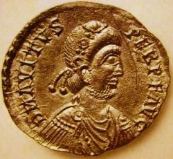Eparchius Avitus * um 400 in der gallischen Auvergne Einleitung Der aus einer reichen Provinzialfamilie stammende und angesehene Avitus wurde durch die Unterstützung der Westgoten Kaiser im Westen und hatte eigentlich nur in seiner eigenen Provinz Gallien eine ausreichende Machtbasis. Zu jener Zeit wurden die Reste des weströmischen Reiches von allen Seiten bedroht. Germanenstämme in Gallien, Hunnen in Pannonien und nicht zuletzt die Vandalen in Africa machten den Römern zu schaffen. Gleichzeitig an allen Fronten zu kämpfen schien eine aussichtslose Sache, die von Avitus jedoch mit Erfolg angegangen wurde. Sein Ende kam nur durch die Unzufriedenen im eigenen Land, die sich gekonnt verbündet hatten um den Kaiser aus der Provinz zu stürzen. Von Avitus existieren nur stilisierende Münzportraits, doch lassen seine Ideen und Handlungen bei manchem Problemlösungsprozess darauf schliessen, dass er eine gehörige Portion Kreativität und Organisationstalent besass. |