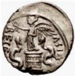 zu 1,77 g des Octavian, Italien 29/27 v.Chr. Die Münze wurde stets nur in kleinen Mengen unters Volk gebracht und 180 v.Chr. kam die Ausprägung wohl aufgrund des Erfolges des Victoriatus völlig zum Erliegen. Erst ein Jahrhundert später wurde der Quinar wiederbelebt und erhielt teilweise ein neues Aussehen. Als Wertbezeichnung erscheint ein Q. Die Rückseite wurde nicht mehr von den Dioskuren, sondern von einem durch Victoria bekränzten Tropaion geziert. Damit trat die Münze in die Fussstapfen des inzwischen abgeschafften Victoriatus. Die grundlegende Form änderte sich nicht mehr und wurde mit einigen Abwandlungen bis weit in die Kaiserzeit verwendet. Aus diesem Grund hiess er inoffiziell Victoriatus und in Griechenland Tropaikon. Die Quinare der kaiserlichen Prägungen wurden wie ihre republikanischen Vorgänger nur sporadisch ausgegeben. Von Gaius bis Decius dürften sie alle der Münzstätte in Rom entsprungen. Es ist wahrscheinlich, dass sie bei offiziellen Feierlichkeiten in der Hauptstadt als Streumünzen für das Volk gedient hatten. Nach dem Jahr 250 n.Chr. gab es ihn nur mehr als edelmetalllose Kleinmünze. |